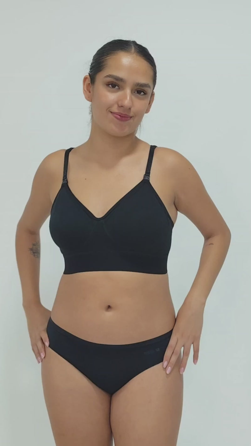 Con un práctico broche maternal, cambiar de un lado a otro durante la lactancia es más fácil que nunca. Además, incluye compartimentos para protectores de lactancia, manteniéndote siempre lista y organizada.